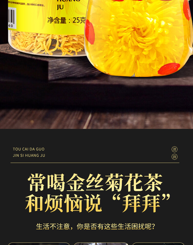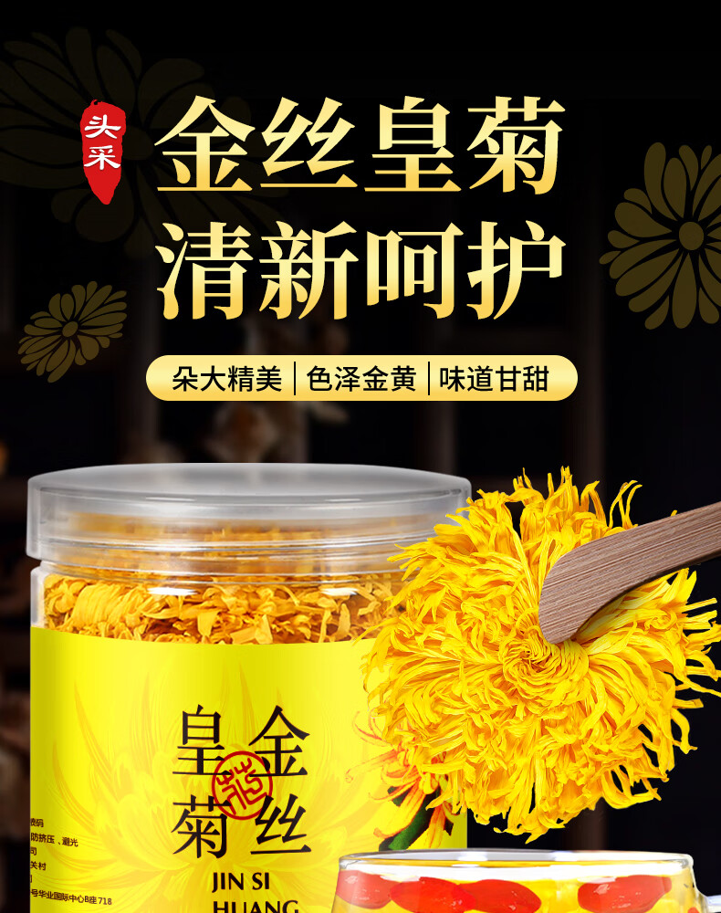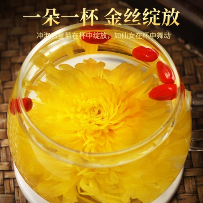 商品名称:茗愿菊花茶【约70朵完整大花】金丝皇菊胎菊黄山贡菊特茶级花草茶25g