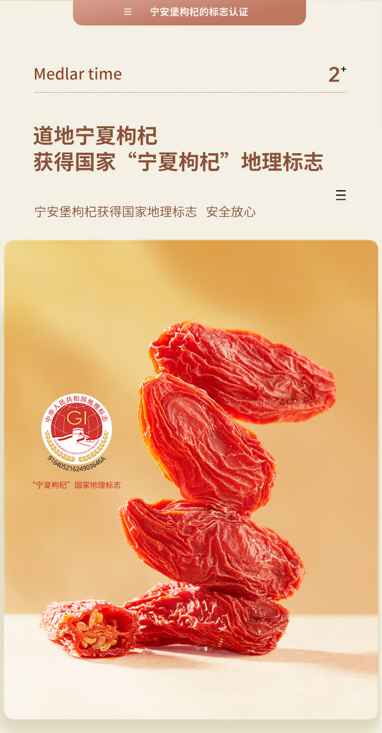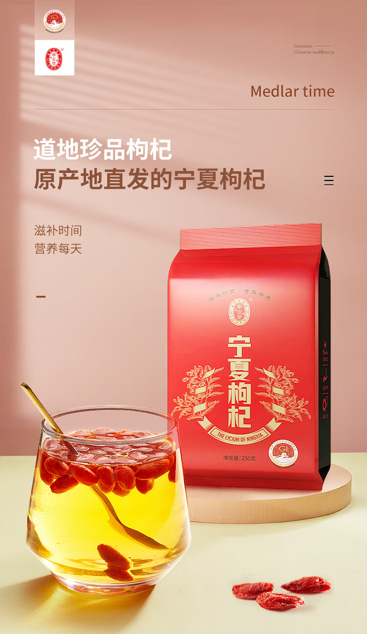 商品名称:宁安堡 好滋补认证无硫熏宁夏特级枸杞子250g特产食补泡水苟杞茶小袋装