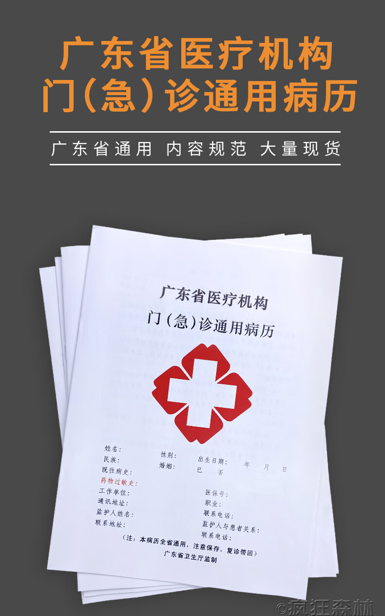 商品名称:疯狂森林广东省医疗机构门(急)诊通用病历卫生室诊所登记本广州市医院病历门诊通用档案本广州深圳病例本 广东省门诊病历本-50本套装