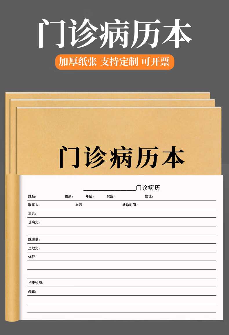 商品名称:门诊病历本 通用门诊病厉本 记录表医院诊所记录本 病例登记本 登记薄门诊病人登记表档案本病志本 1本32张门诊病历本(16k)