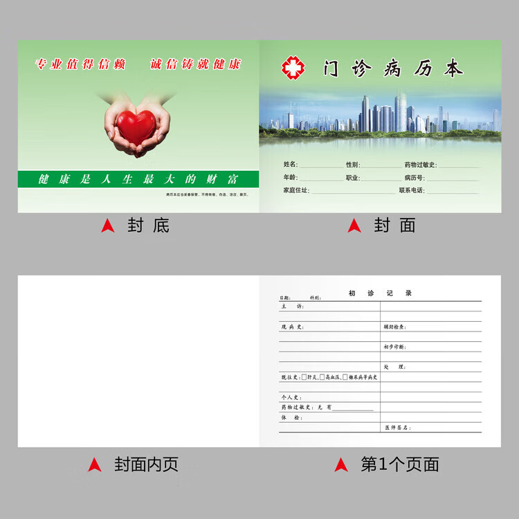 商品名称:医院通用门诊病历本现货牙科诊所病例定制医保卡手册档案 10000本可定做价格邮费另意