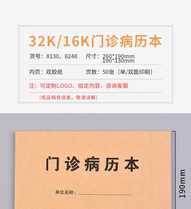 商品名称:通用门诊病历本现货医院病例本医疗机构记录本诊所口腔牙科登记本 32K门诊病历【8248】1本