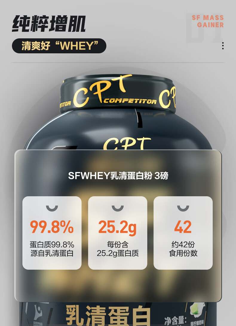 商品名称:康比特SFWHEY乳清蛋白粉 79%高蛋白含量低脂补充蛋白质健身蛋白粉增肌粉健肌 乳清蛋白3磅/1.36kg 青柠酸奶味