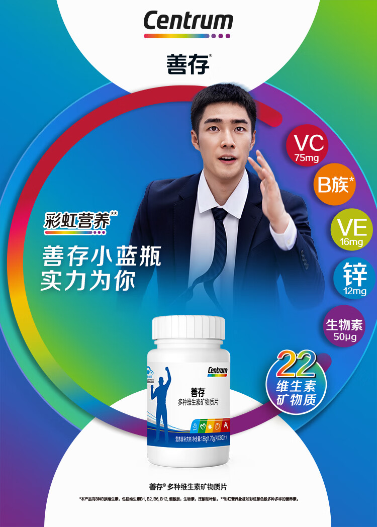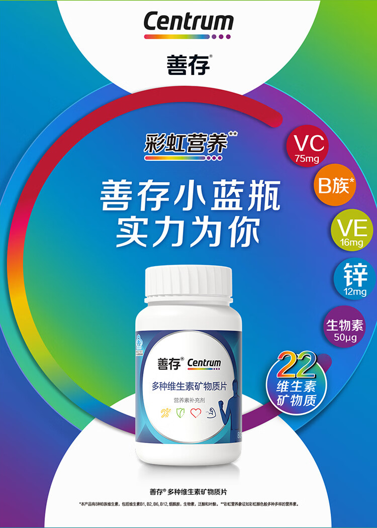 商品名称:善存男士成人多种复合维生素b族矿物质 锌镁片锌硒片 维生素C 维生素e 含烟酰胺叶酸 vc 维bed 小蓝瓶 80片